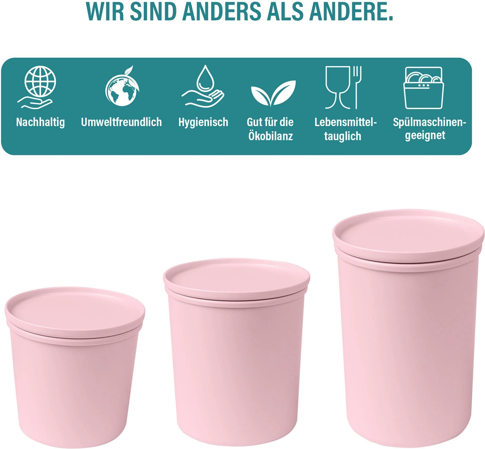 | Afmeting | 1000 ml, Ø 10,4 cm x 17,2 cm, 500 ml, Ø 10,4 cm x 10,1 cm, 800 ml, Ø 10,4 cm x 13,5 cm |