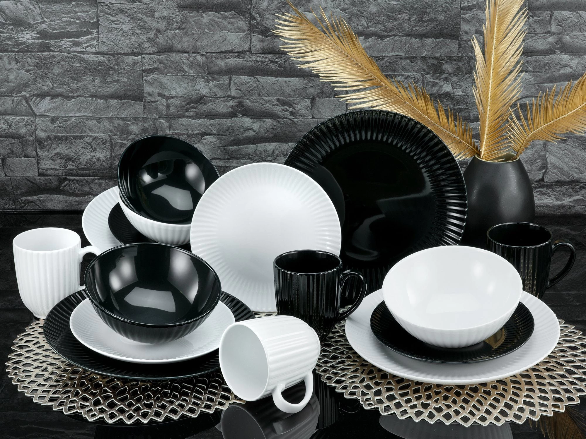 CreaTable Combi-servies Allegra Black & White Actueel Trenddesign In Zwart En Wit (set)