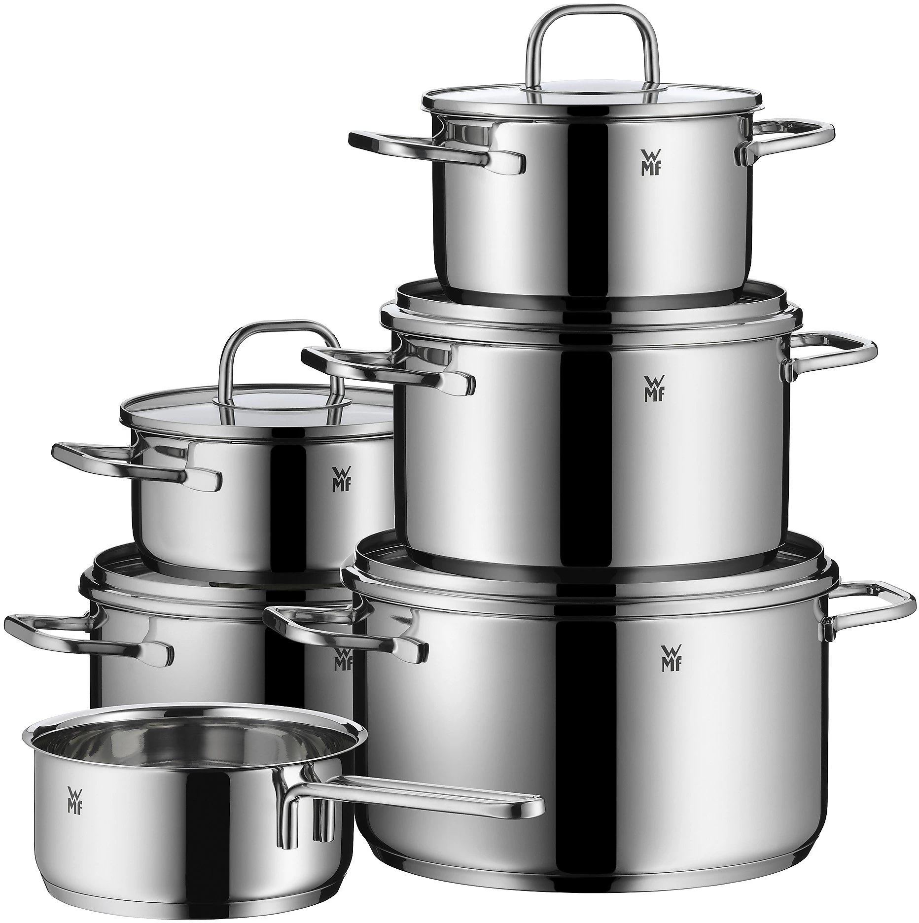 | Leveringssamenstelling | 1x kookpan ø 16 cm, 1x kookpan ø 20 cm, 1x kookpan ø 24 cm, 1 steelpan Ø 16 cm, 1x serveerpan ø 24 cm, 1x hapjespan ø 24 cm, inhoud kookpan: 1,0 / 2,0 / 4,0 l l |