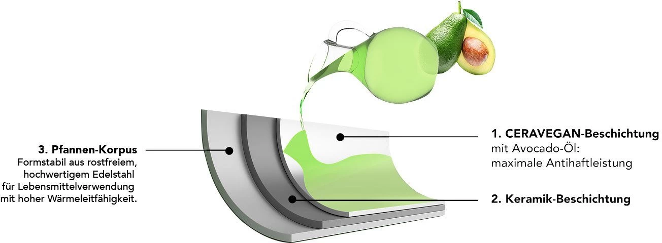 | Materiaaleigenschappen pan | Snij-/krasbestending, Met antiaanbaklaag, Fruitzuurbestendig, Smaakneutraal, Roestvrij |