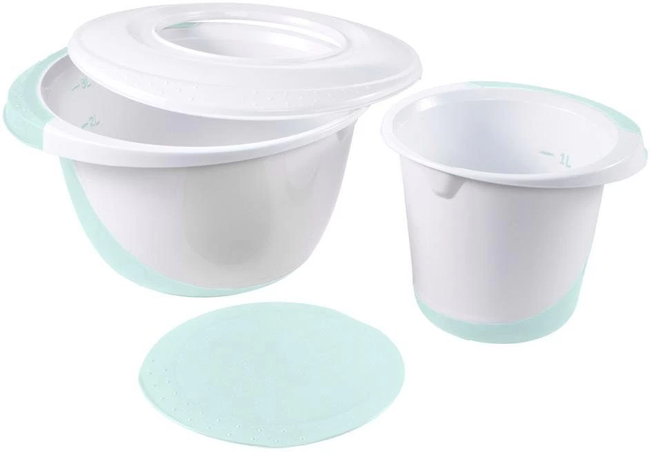 De 4-delige mengkommenset van keeeper is bijzonder veelzijdig in de keuken. Ideaal voor het mixen en kneden. De set bestaat uit 2 mengkommen (1,5 l + 3,5 l), 1 spatscherm en 1 multifunctionele deksel, die ook als deegschraper gebruikt kan worden. De beide kommen zijn opzij met een greep en een schenktuit uitgevoerd. De antislip-coating aan de onderkant zorgt voor extra stabiliteit. Het spatscherm is eenvoudig op de 3,5 l-kom te leggen en met de deegschraper als deksel te sluiten. De deegschraper kan eveneens als deksel voor de 1,5 l-kom gebruikt worden.<br><br><b>Artikeldetails:</b><ul><li>Mengkommenset met antislip</li><li>Met maatverdeling</li><li>Ruimtebesparend in elkaar te plaatsen</li><li>Van hoogwaardige kunststof / BPA-vrij</li><li>Materiaal: polypropyleen (PP/TPE)</li><li>Levensmiddelenecht</li><li>Geschikt voor de vaatwasser</li><li>Gebruikstemperatuur van -20 °C tot +100 °C</li><li>Made in Europa</li></ul><b>De 4-delige set bestaat uit:</b><ul><li>1 mengkom, inhoud 1,5 l, afm. (Ø/h) 18 x 14 cm</li><li>1 mengkom, inhoud 3,5 l, afm. (Ø/h) 27 x 15 cm</li><li>1 spatscherm</li><li>1 deksel/deegschraper</li></ul>