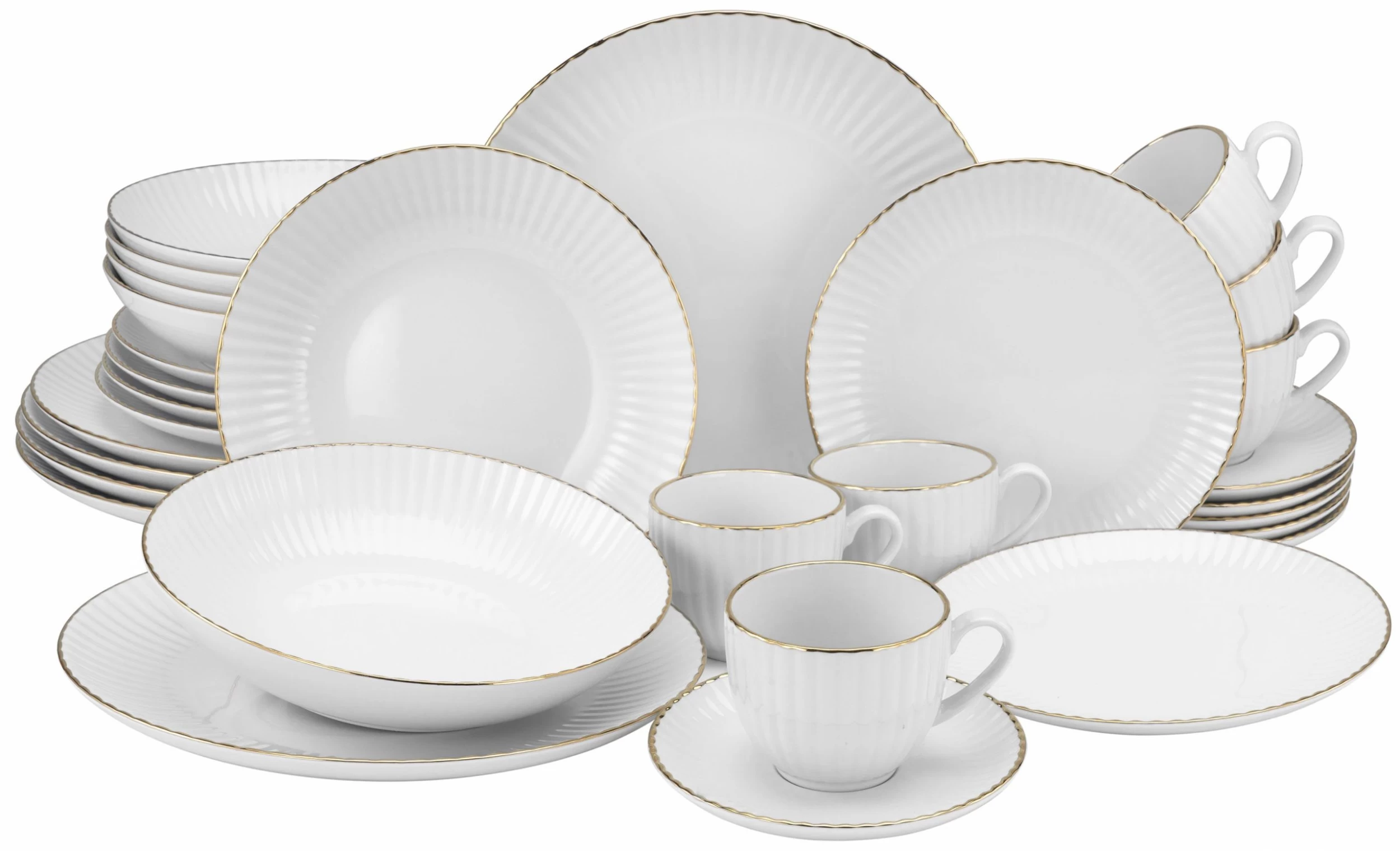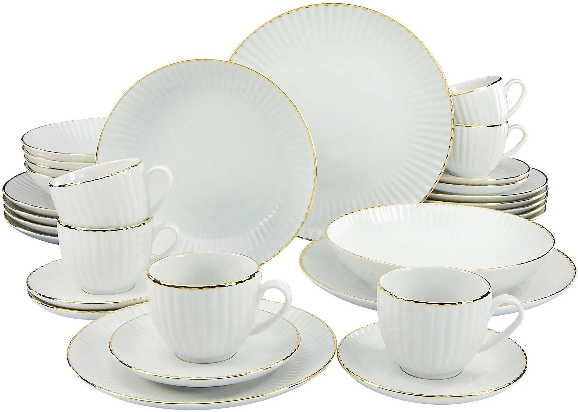 My Home Combi-servies LEONA Met Met De Hand Beschilderde, Brede Goudkleurige Band (set)