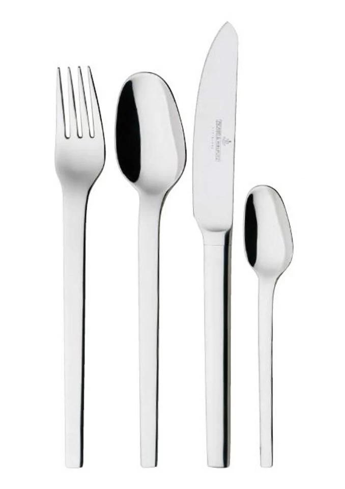 Bestekset, Picard & Wielputz, 'TOOLS'. Gemaakt van excellent chroomnikkelstaal 18/10, geheel gepolijst. Massieve messen van roestvrij chroomstaal. Het bestek is geschikt voor de vaatwasser en in de volgende samenstellingen te bestellen: 24-delig, bevat 6 lepels, 6 vorken, 6 messen en 6 koffielepels. 30-delig: bevat 6 lepels, 6 vorken, 6 messen, 6 koffielepels en 6 taartvorkjes.