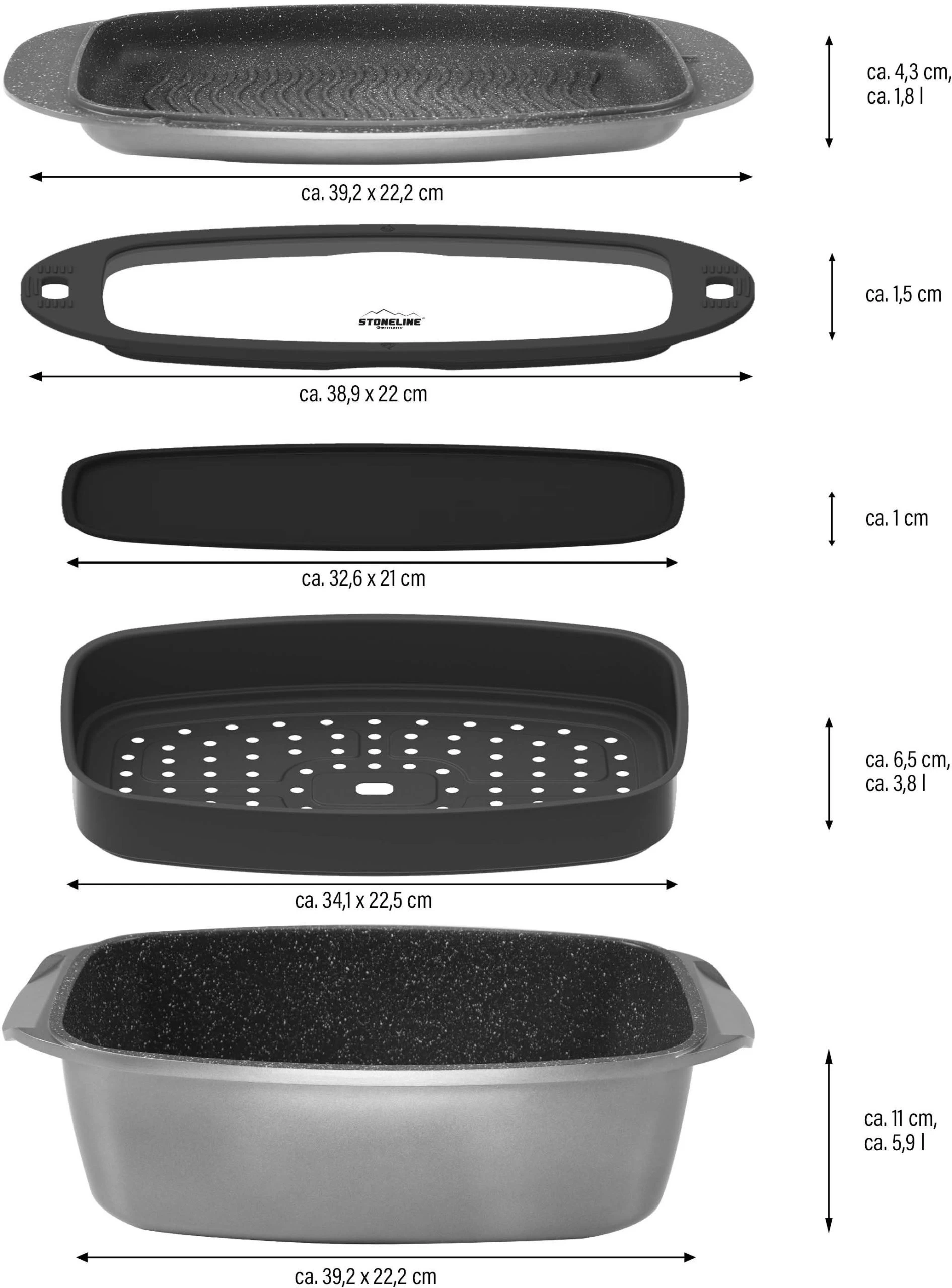 STONELINE Braadpan Stoneline (multifunctionele Braadpan- En Bakset), Met Stoneline®-antiaanbaklaag, Inductie (5-delig)